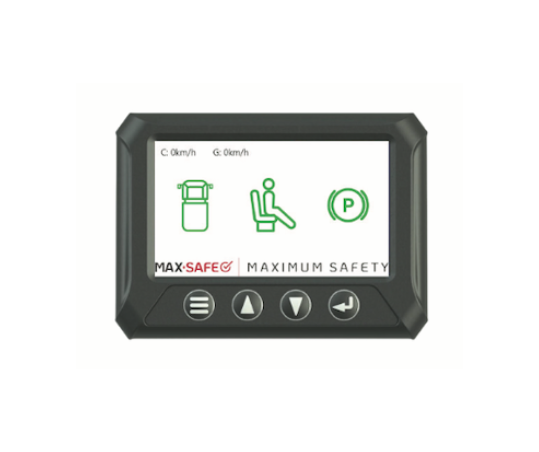 The system has a push button override switch, used to release the brakes after the system has triggered. An illuminated ring around the push button shows the state of the MAX-SAFE Reverse Watch® system – GREEN when the system is active, and RED when the system has triggered.